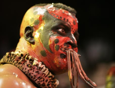 On July 10 in, The Boogeyman was a guest during a segment, ostensibly to be educated on worms, only to be attacked by Striker's debuting,. The Boogeyman was not seen for the next three weeks, finally re-emerging on the July 31 episode — with a new face paint design and black contact lenses — to scare Big Daddy V off after he finished a match.